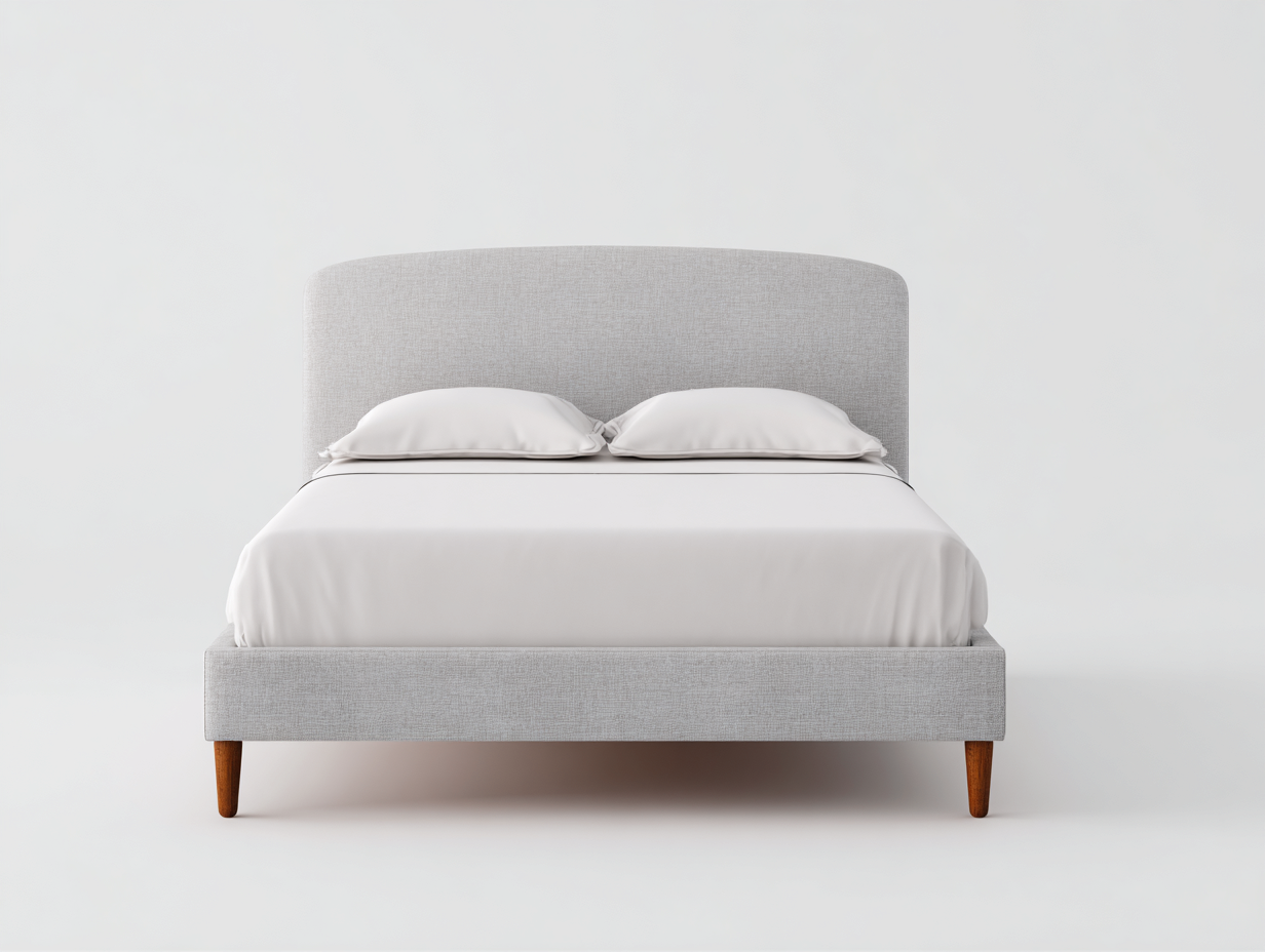 Lit double en tissu gris clair avec tête de lit arrondie et pieds en bois - 198x164x102 cm - gris clair - style moderne et doux pour chambre