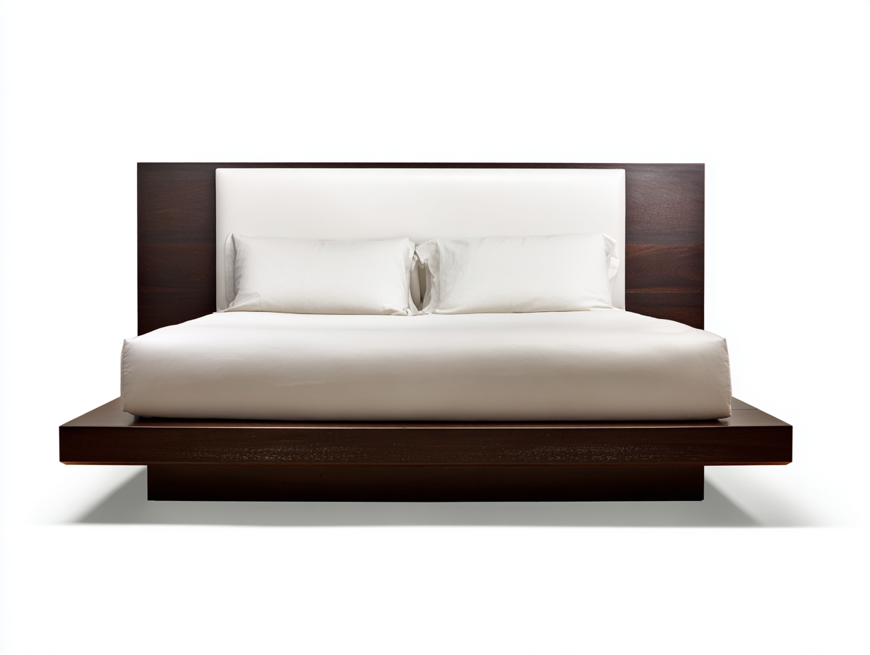 Lit double avec tête de lit rembourrée et structure en bois massif - 202x178x100 cm - blanc et marron foncé - design contemporain pour chambre