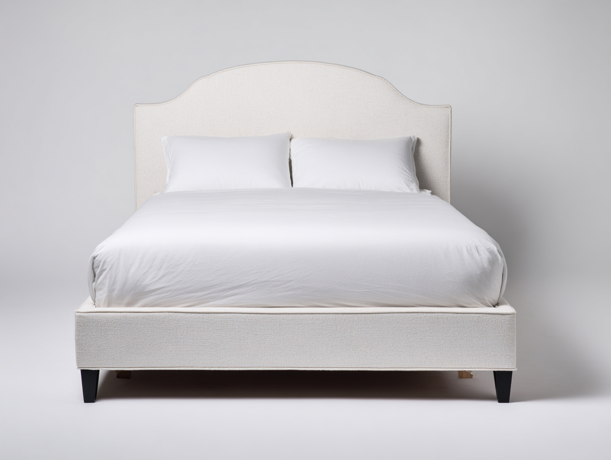 Lit double rembourré en tissu avec tête de lit arrondie - 200x170x110 cm - beige - design élégant pour chambre